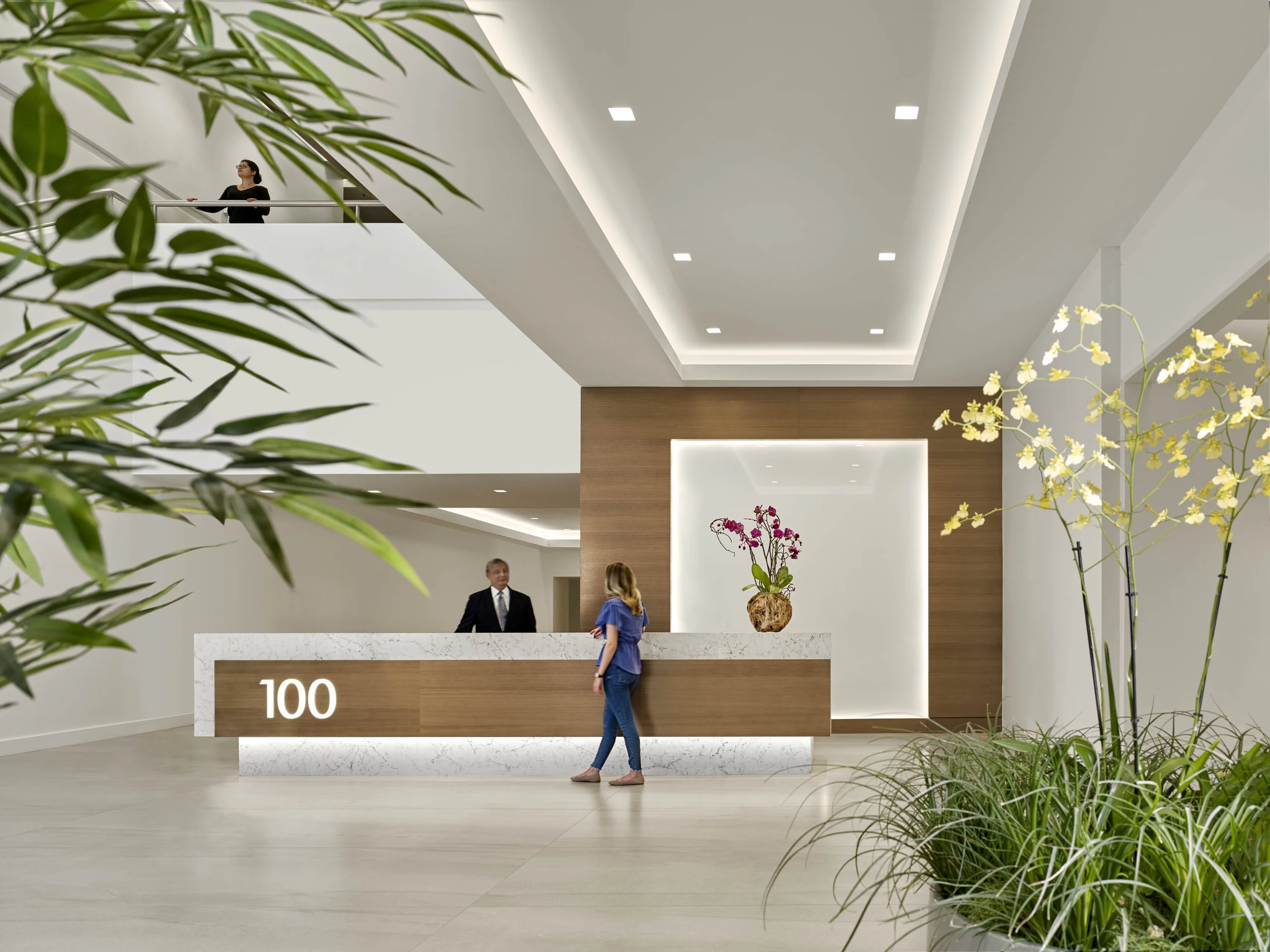 Mature trees, shrubs, and lawn areas. Irrigated by in-ground sprinkler system. Patio foliage on drip system; 3rd floor plaza tree and flower pots are hand watered.